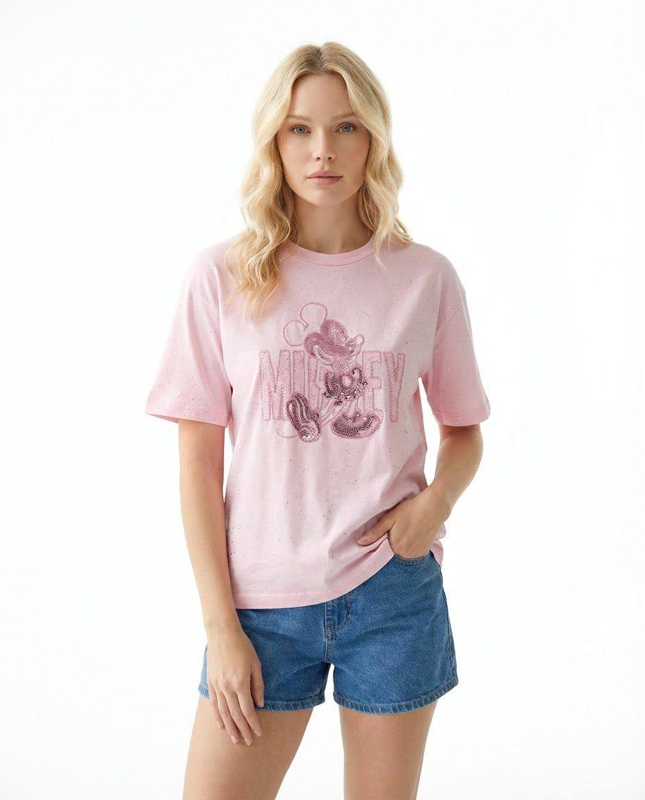 Ροζ γυναικεία μπλούζα Minnie με εντυπωσιακές παγιέτες
