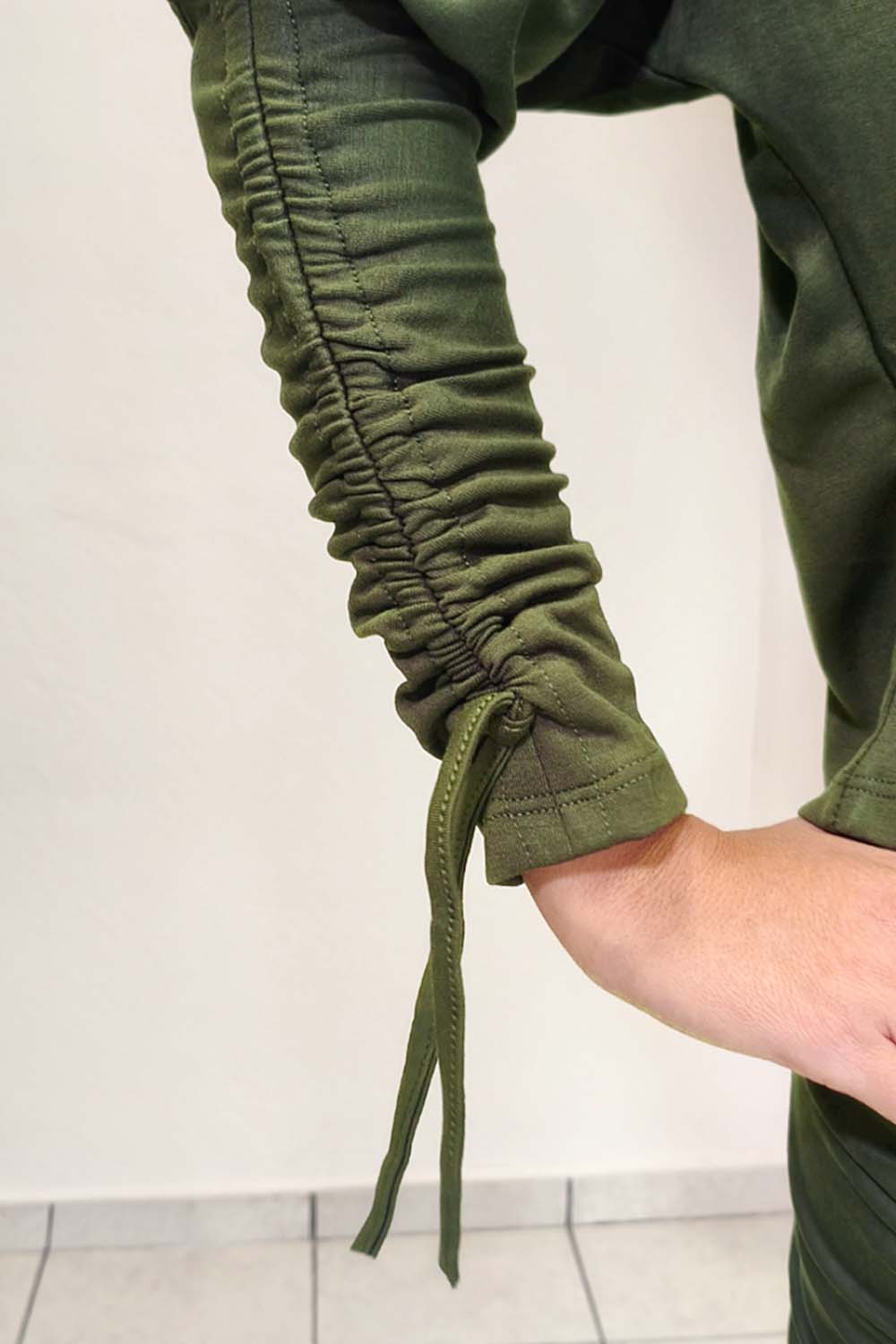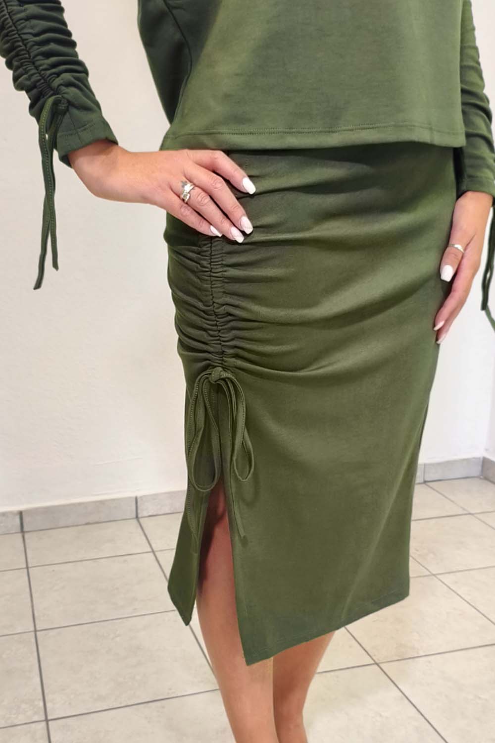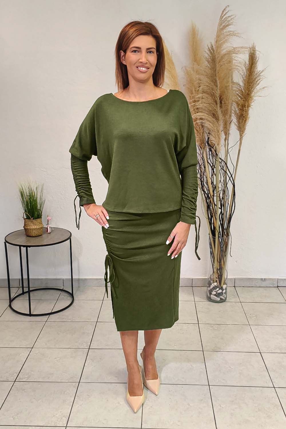 Σετ δύο τεμαχίων (φούστα και μπλούζα) στο χρώμα του σκούρου χακί/λαδί.